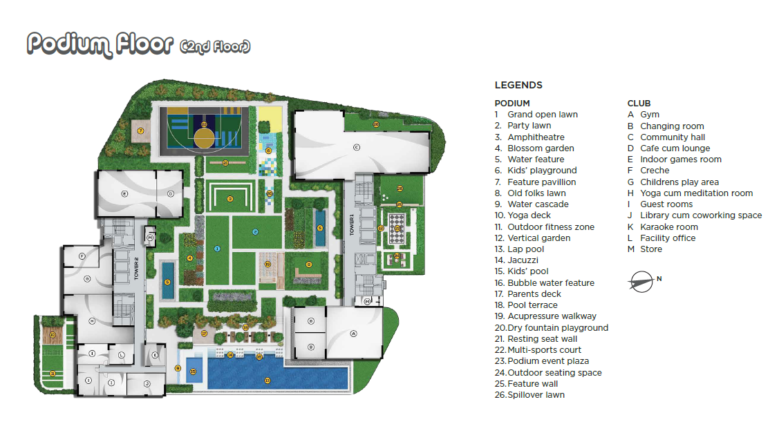 Gymnasium Lap Pool Kids Play Area Amphitheatre Indoor Games Room Jogging Track Yoga Meditation Room Adda Zone Old Folks Lawn Multipurpose Court Kids’ Pool With Parents Deck Outdoor Jacuzzi Party Lawn Karyoke Room Community Hall Library With Co-working Space Pet Park Cafe Cum Lounge Outdoor Adda Zone Bubble Water Feature Acupressure Walkways