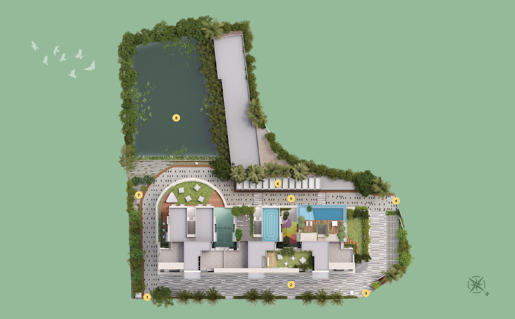 • 65% open space with internal waterbody — rare blend of nature within the city
