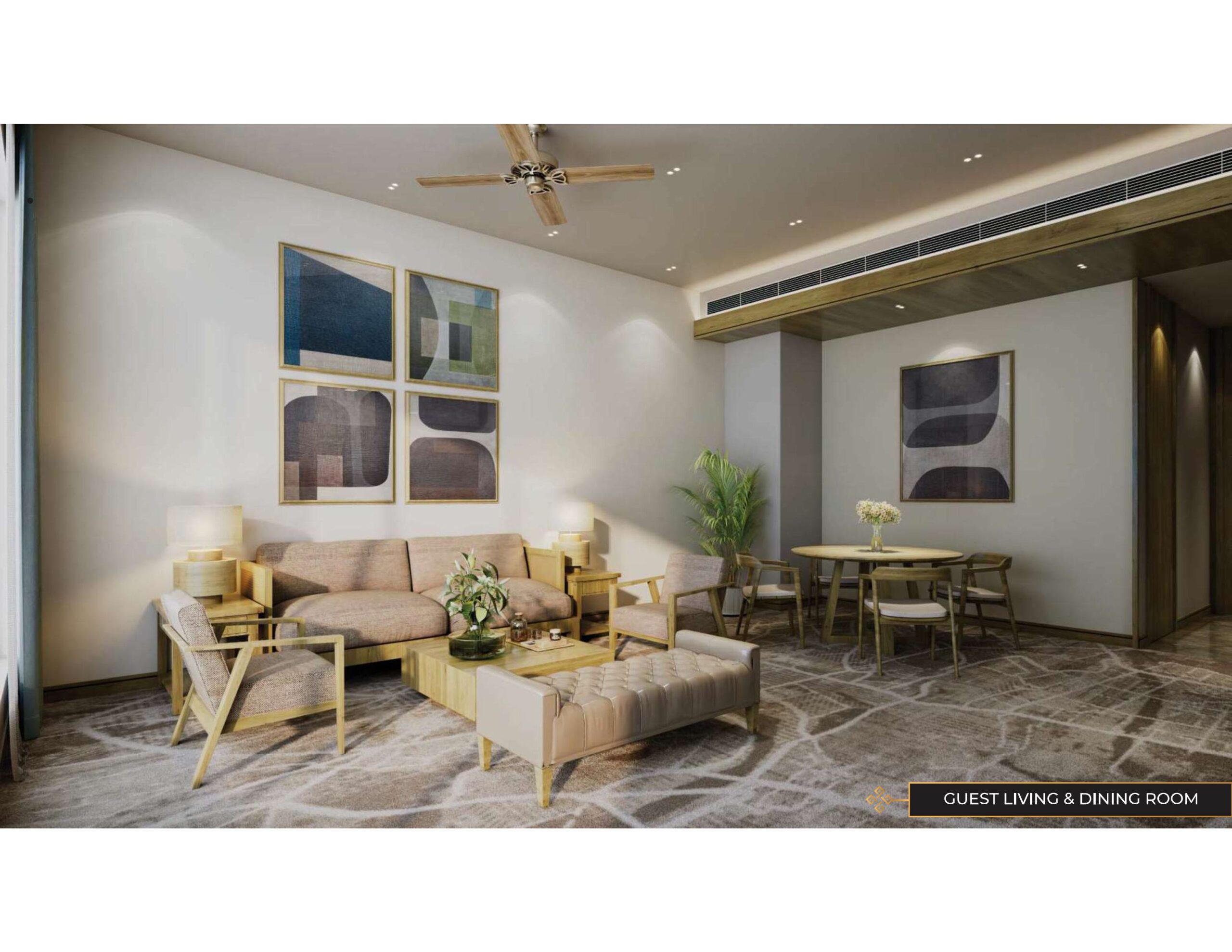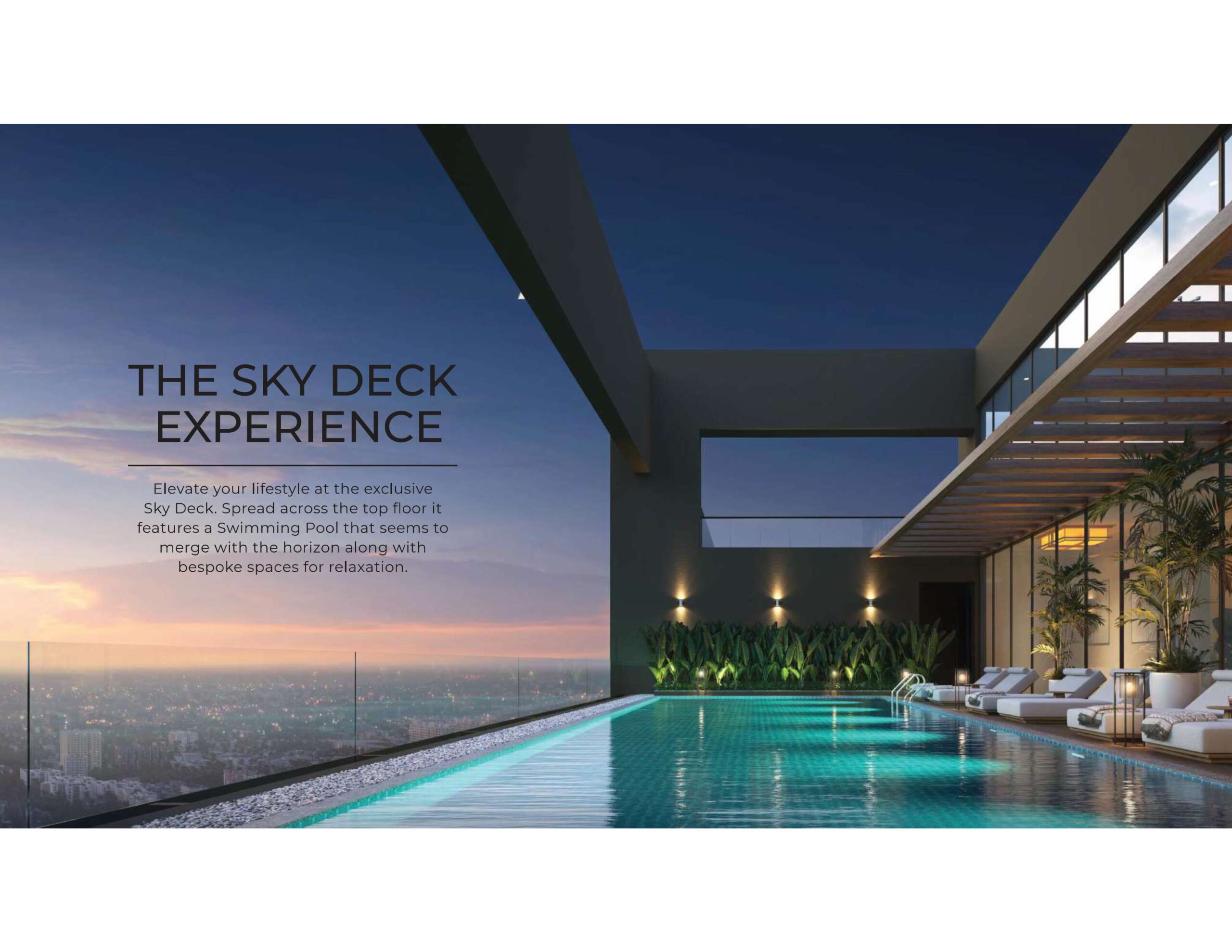 The exclusive Sky Club redefines luxury, featuring a Sky Deck Pool that seems to merge with the horizon, along with bespoke spaces for relaxation.