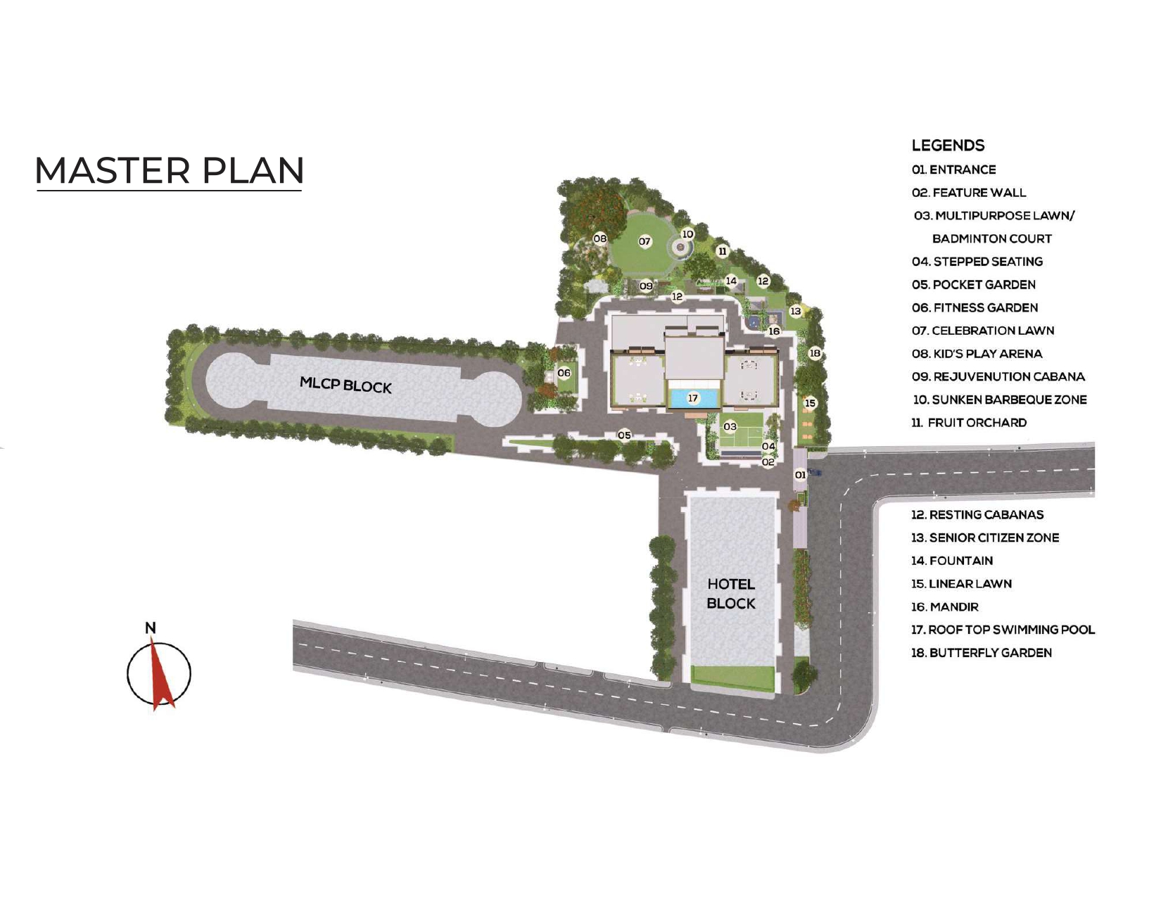 Mandir Multipurpose Lawn Rejuvenation Cabanas Fitness Garden Outdoor Kids Play Area Celebration Lawn Stepped Seating Sunken Barbeque Zone Butterfly Garden Pocket Gardens Fruit Orchard Senior Citizen Zone Gazebo & Event Cabana Aerobics Lawn Swimming Pool (Sky Deck Pool) Gymnasium Indoor Games Room Massage Room Jacuzzi Yoga Room