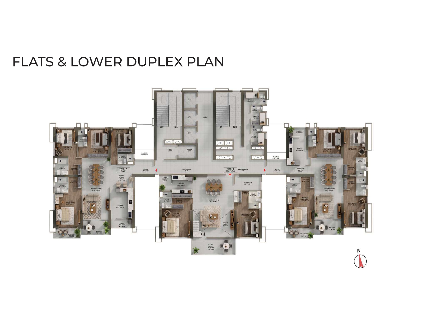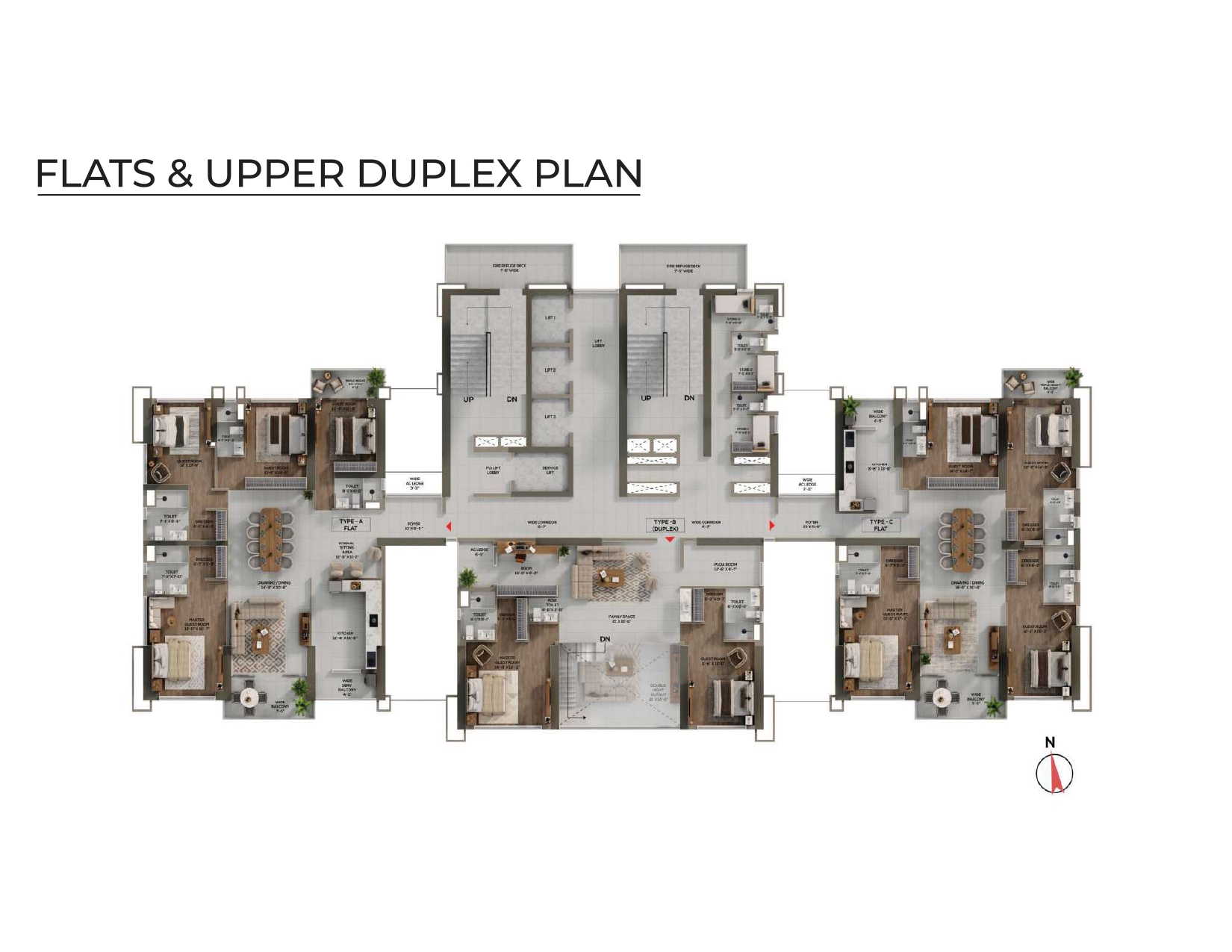 Palladina offers a limited collection of spacious simplex and duplex homes with expansive layouts designed for open, airy living. With only three residences per floor, your home ensures unmatched privacy and exclusivity, feeling like a serene, uninterrupted private retreat in the sky. Every residence is also thoughtfully crafted to be Vaastu-compliant for harmony and positive living.