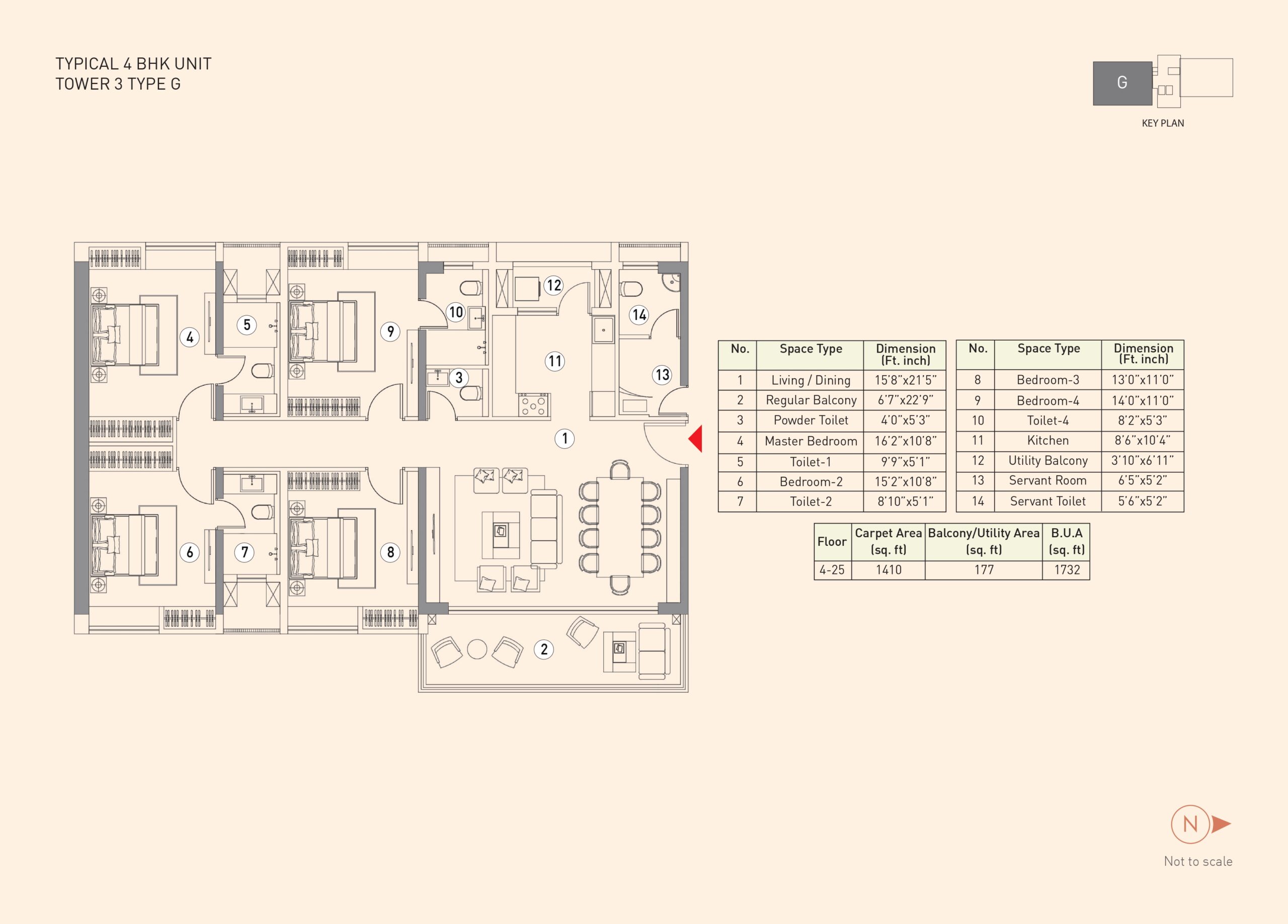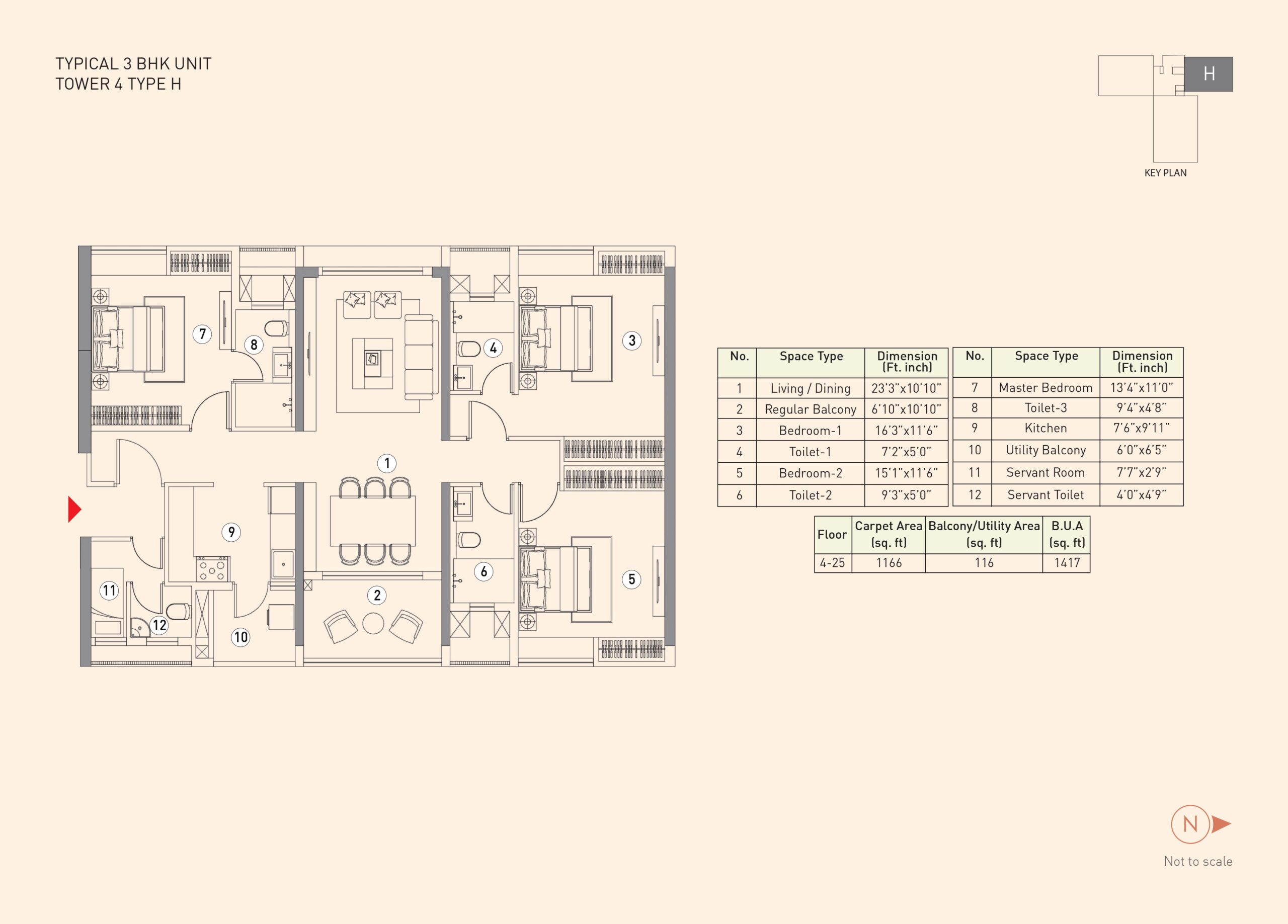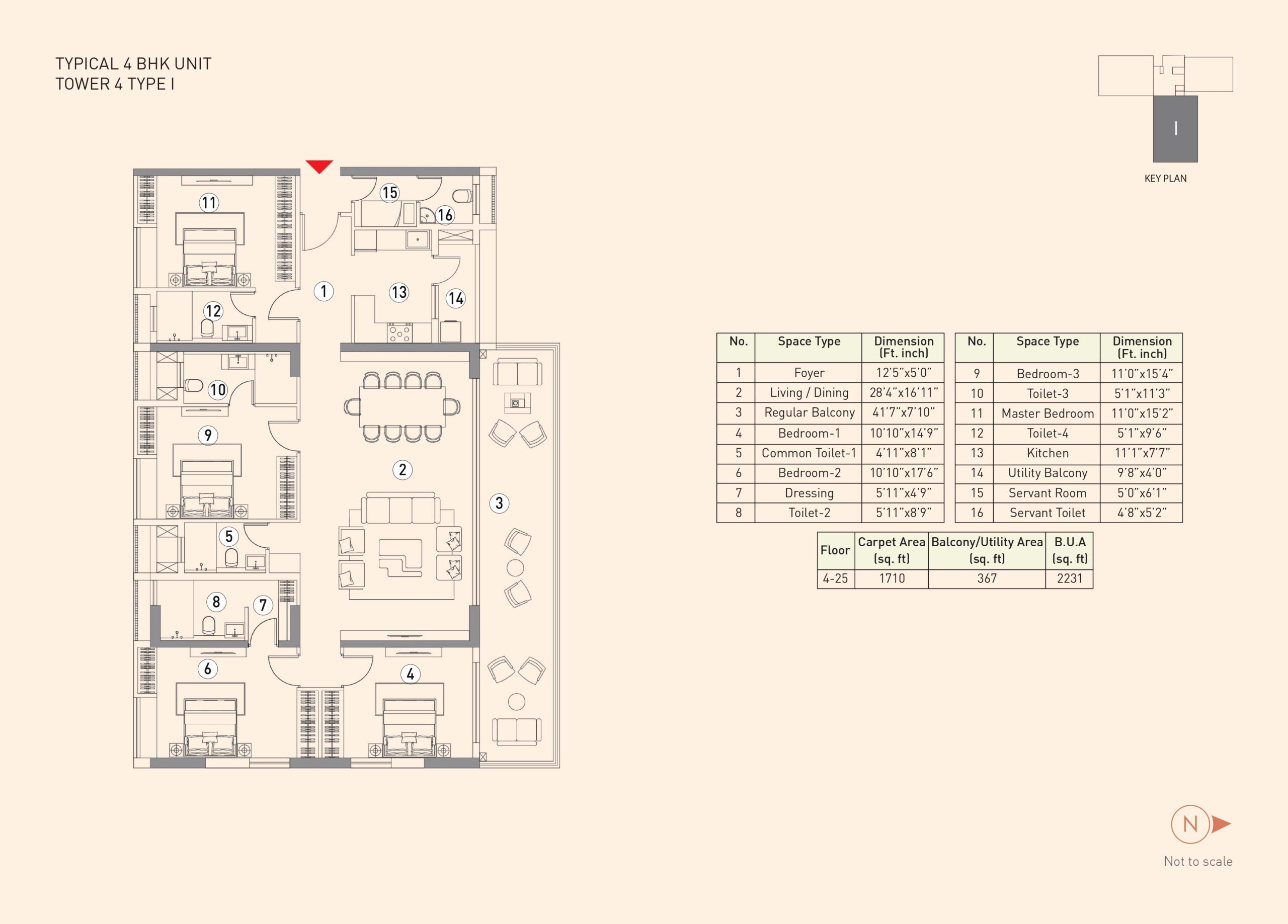 The project features a 3rd-floor podium connecting all five towers with various amenities like a gym, swimming pool, and landscaped areas