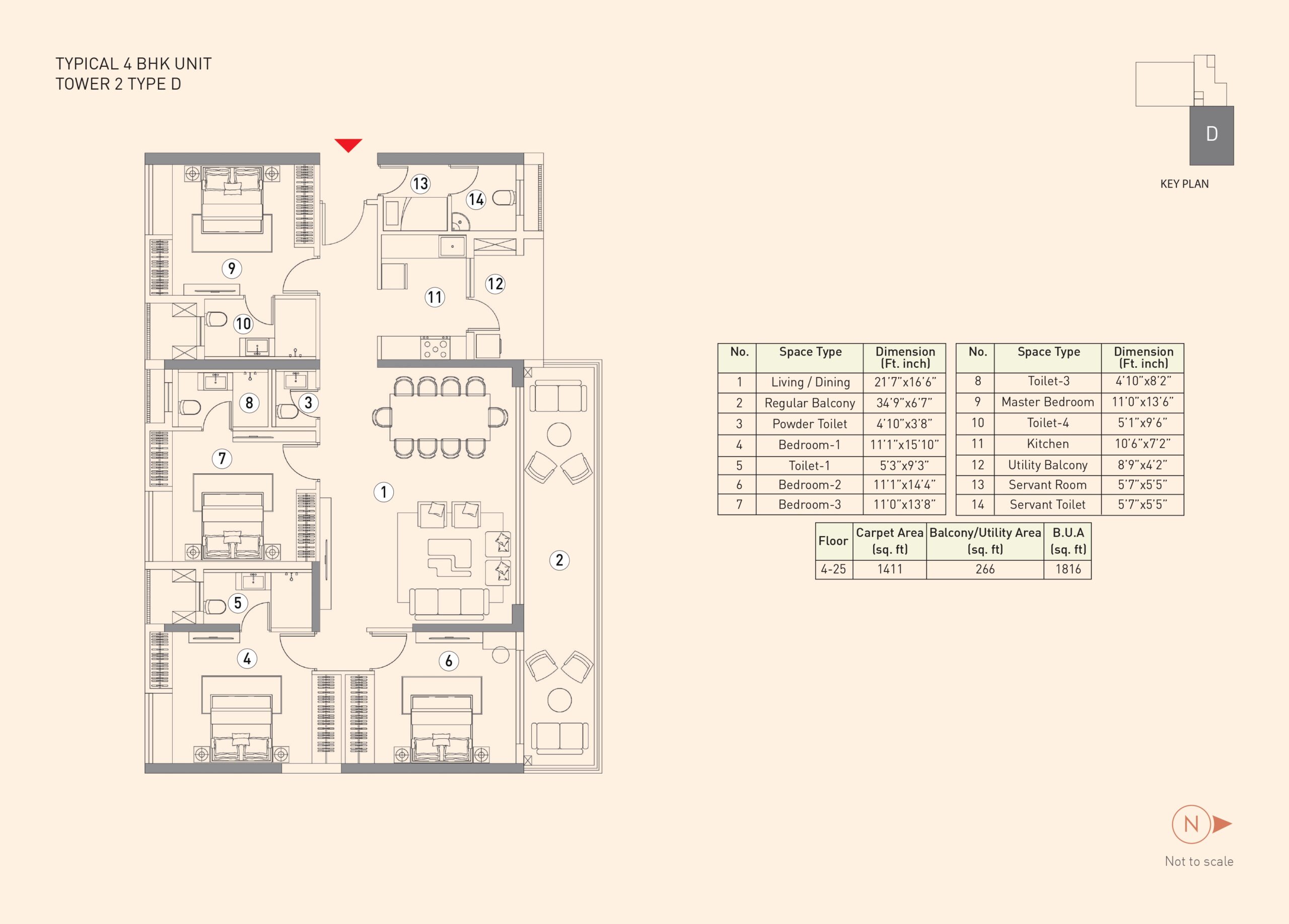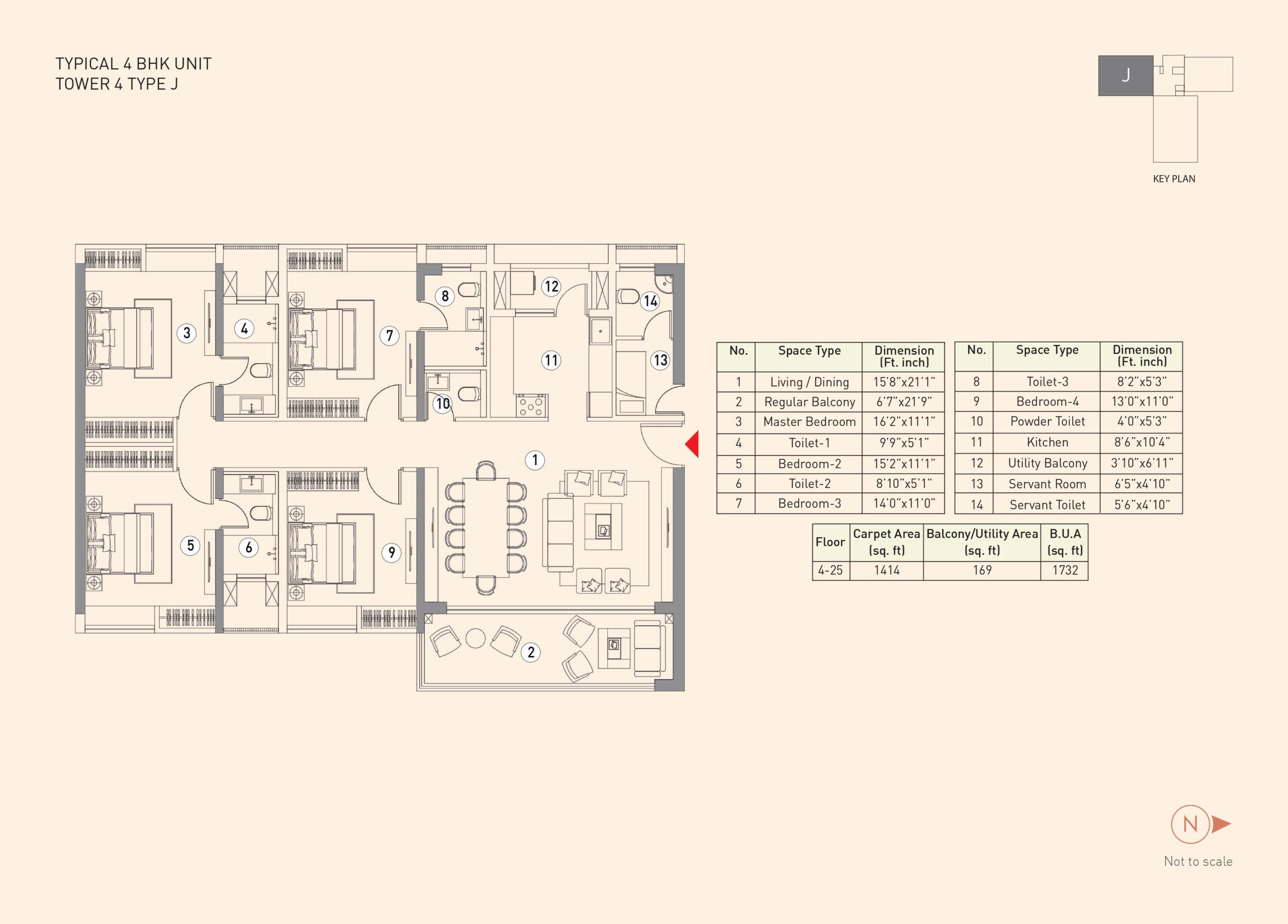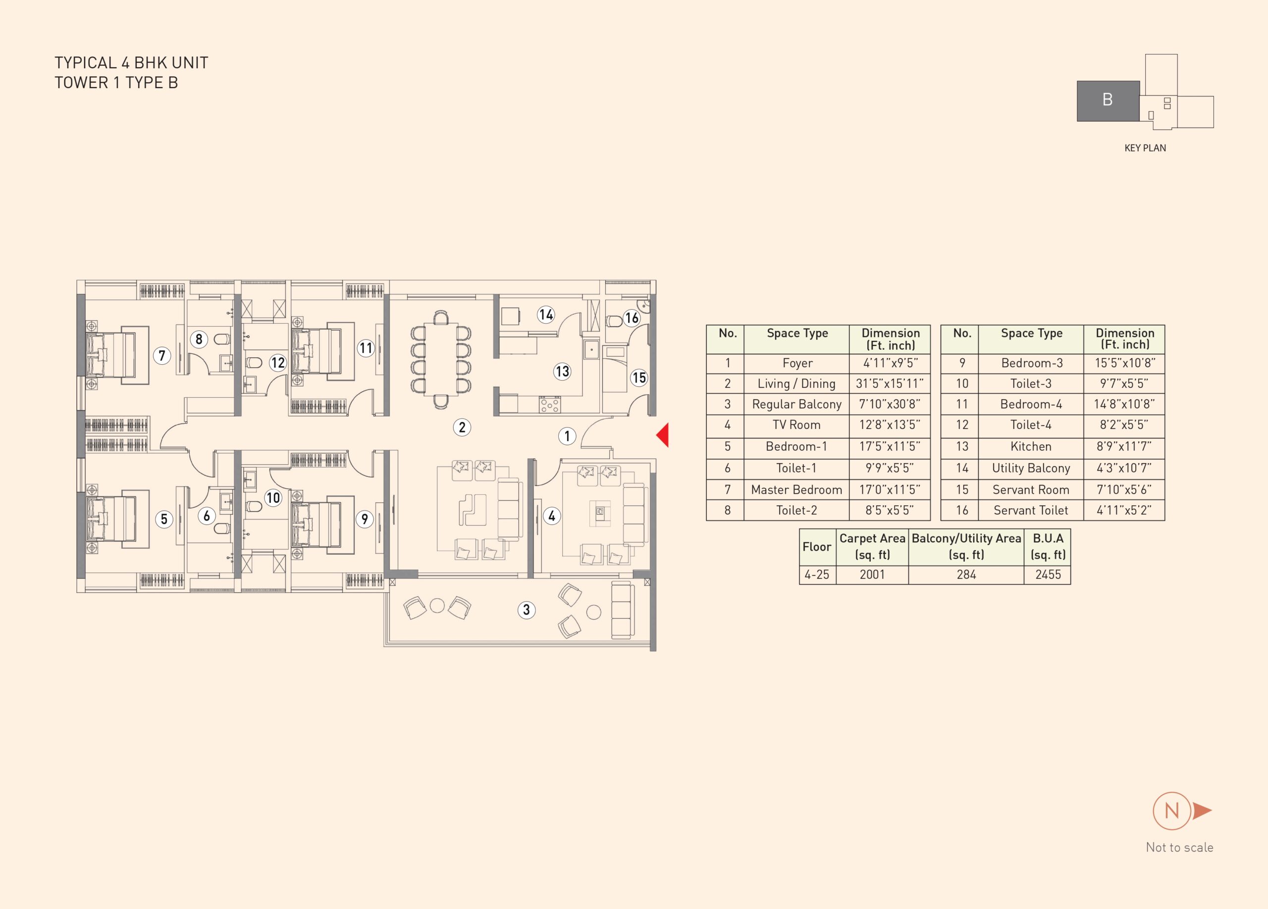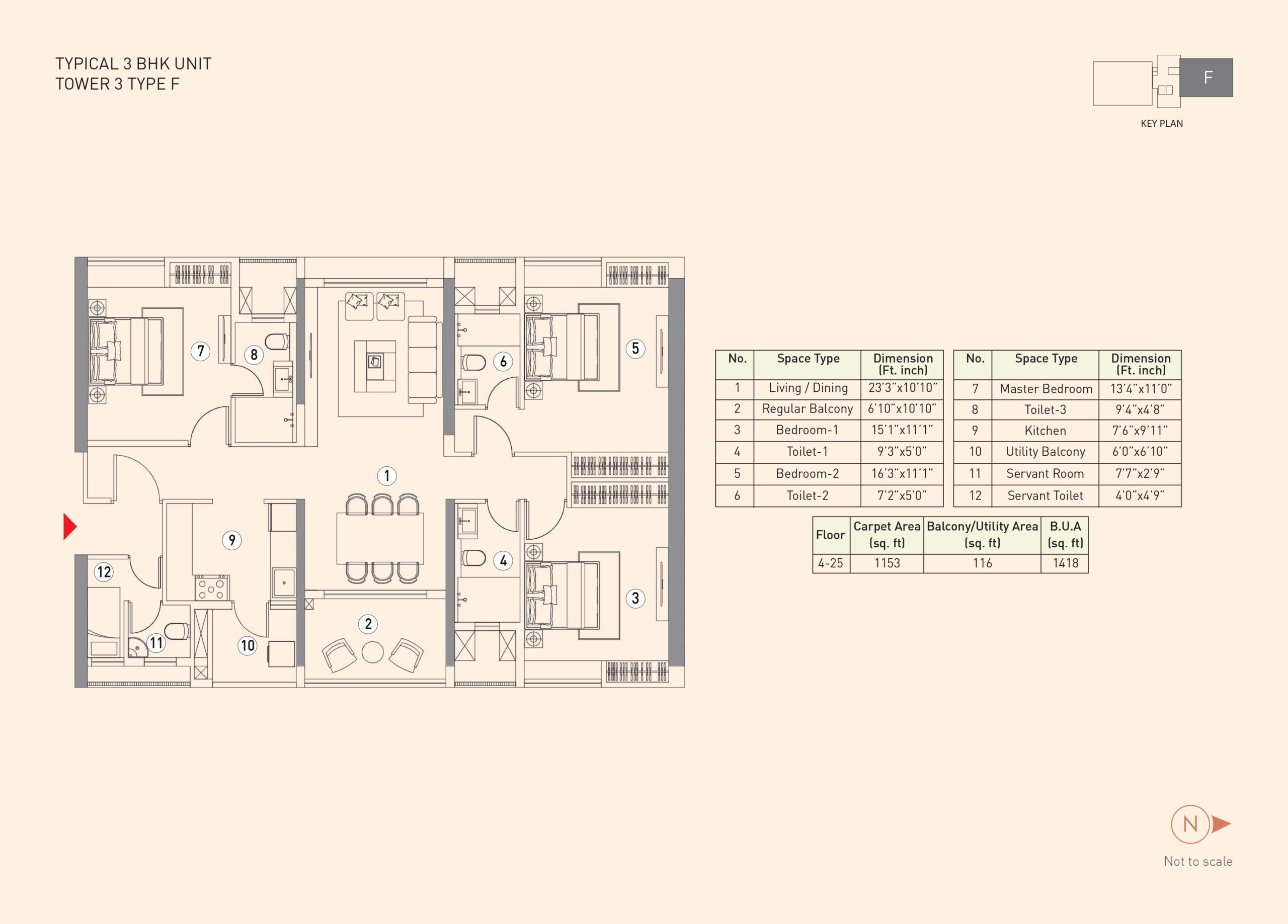 The project features a 3rd-floor podium connecting all five towers with various amenities like a gym, swimming pool, and landscaped areas